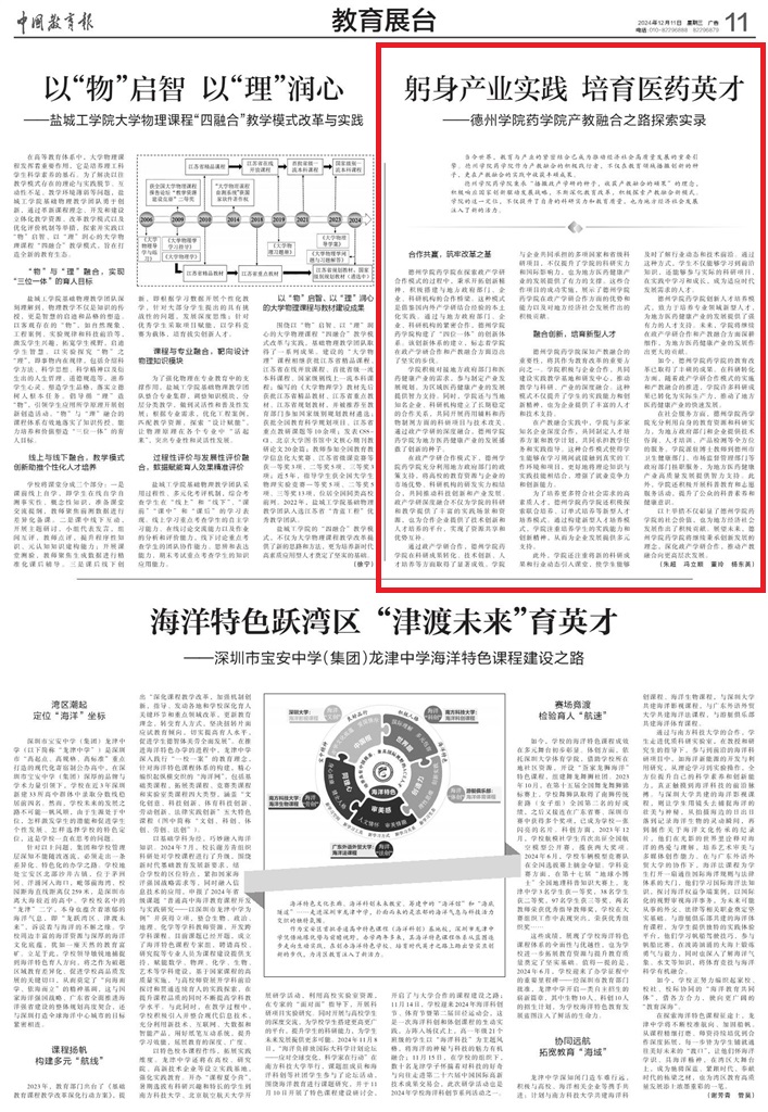 【中国教育报】躬身产业实践 培育医药英才——suncitygroup太阳成集团产教融合之路探索实录