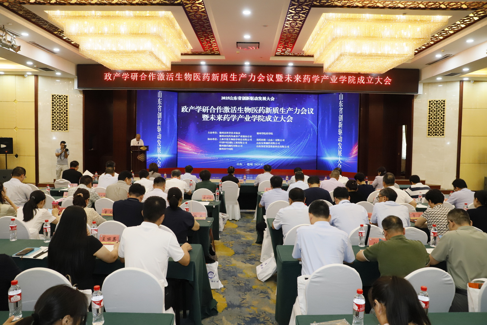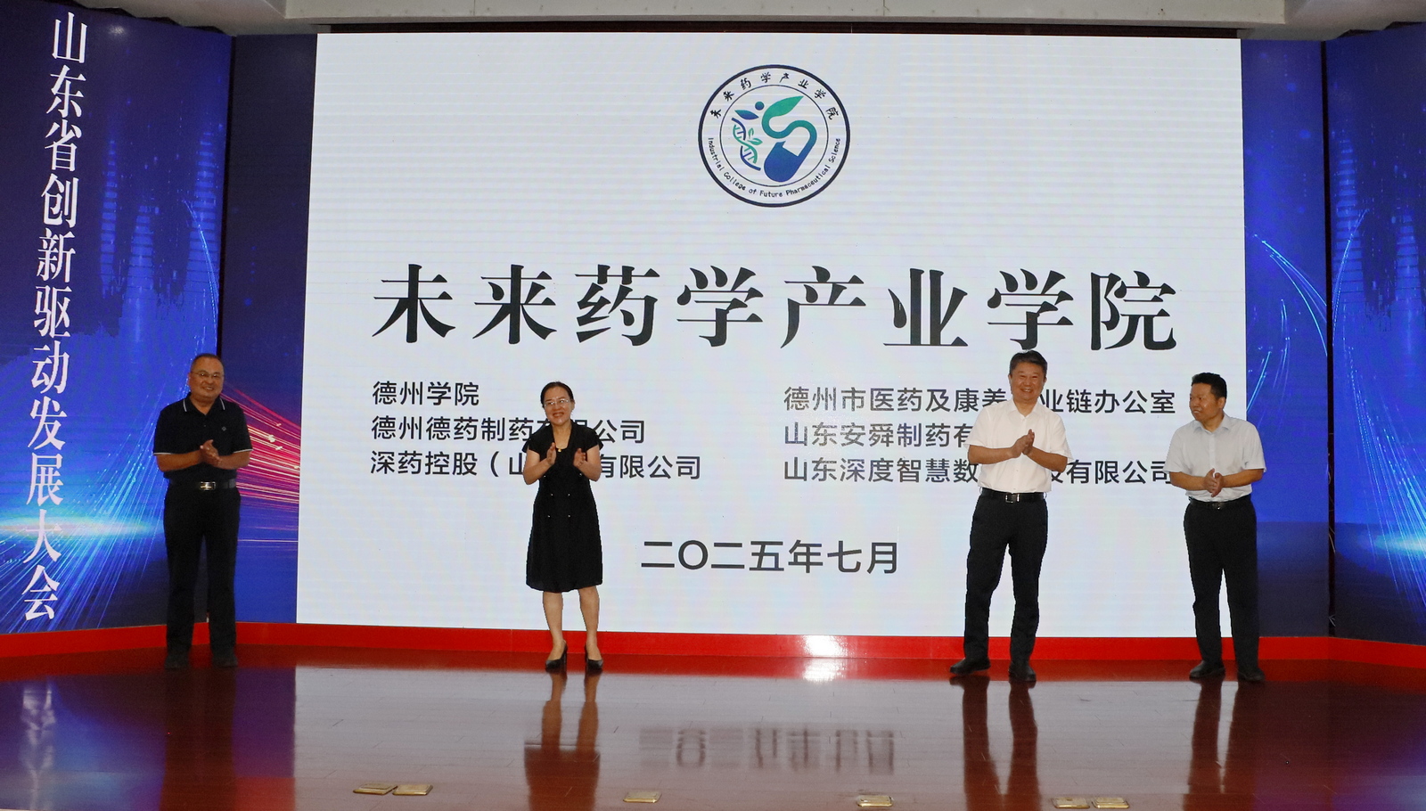 7月26日上午,政产学研合作激活生物医药新质生产力会议暨未来药学产业学院成立大会在德州市柳湖书院酒店举办。此次会议是2025山东省创新驱动发展大会系列活动之一,由德州市科学技术协会、suncitygroup太阳成集团、德州市医药及康养产业链办公室联合主办,上海甘泓生物医学科技有限公司、深药控股(山东)有限公司等7家企事业单位协办。我校党委委员、副校长徐静,德州市科学技术协会、卫生健康委员会、发展和改革委员会相关职能部门负责人,来自清华大学、武汉大学等11所高校及研究院知名专家,德州市医养健康股份有限公司等7家企业代表及我校suncitygroup太阳成集团全体师生百余人参加会议。