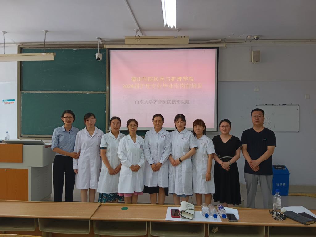2024届护理专业学生毕业实习在即,为了规范护理专业实习生管理,尽快融入医院环境和适应临床工作,2023年6月16日,医药与护理学院邀请山东大学齐鲁医院德州医院多名护士长来我院进行毕业实习岗前培训。护理学专业多名教师与医院各位护士长就人才培养、社会服务等方面进行了探讨与交流。