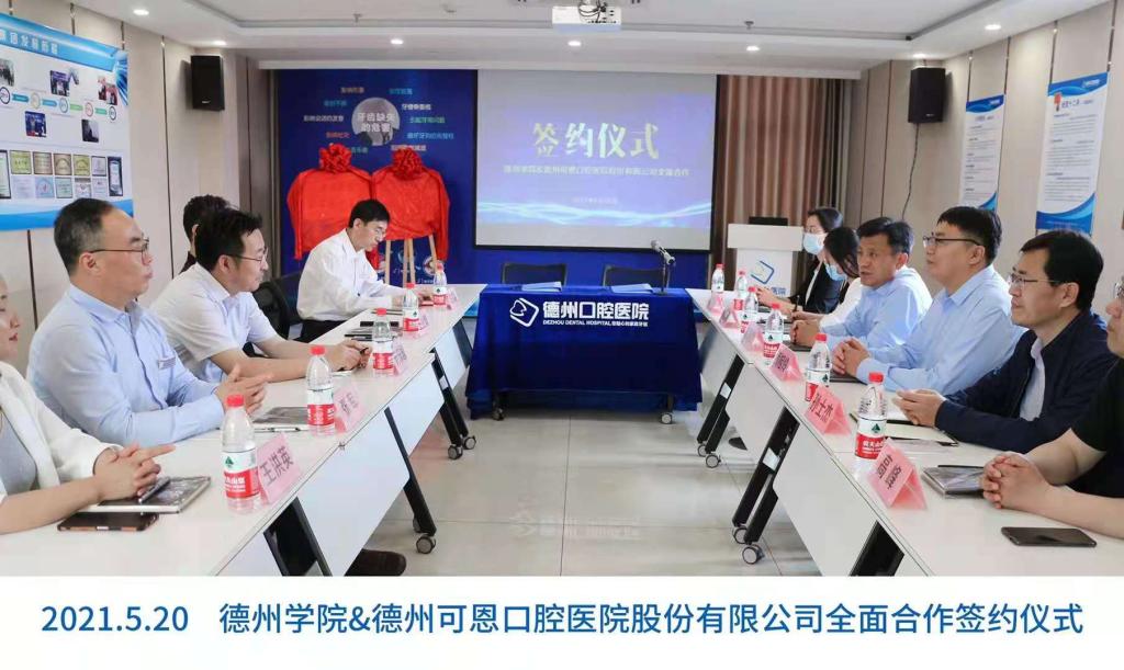 5月20日下午,太阳成城集团德州可恩口腔医院股份有限公司全面合作暨实习实训基地、科教实训基地签约仪式在德州口腔医院举行。