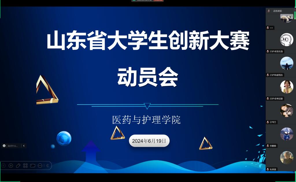 6月19日晚,医药与护理学院组织开展线上大学生创新大赛(原“互联网+”创新创业大赛)动员大会,学院竞赛负责老师与各班负责人参加本次大会。