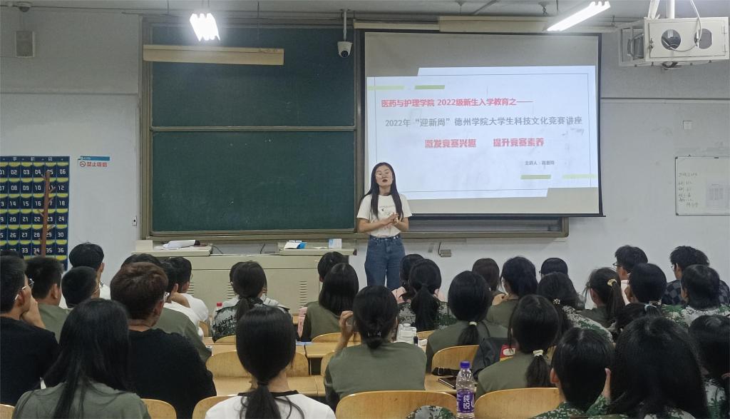 为贯彻落实学校创新创业教育体系,有力推动创新创业工作。9月23日晚,医药与护理学院在求实楼召开2022年“迎新周”大学生科技文化竞赛讲座,学院副书记主持,专业教师、辅导员、2022级全体新生参加。
