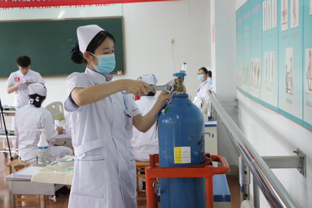 2022年5月7日下午在求索楼205举行决赛,即实践技能考核。参赛选手以4人为一组,考核内容包括病例分析、单人肺复苏技术(成人)、氧气筒吸氧法、密闭式静脉输液法四项。采用以案例为主线的多站式竞赛方式,重点考核学生的临床思维能力、评判性思维能力、应急处理能力和护理操作能力。比赛现场,同学们操作动作规范,每一步都严格按照操作流程进行,态度一丝不苟,充分展现了他们专业的技能和自信的风采。