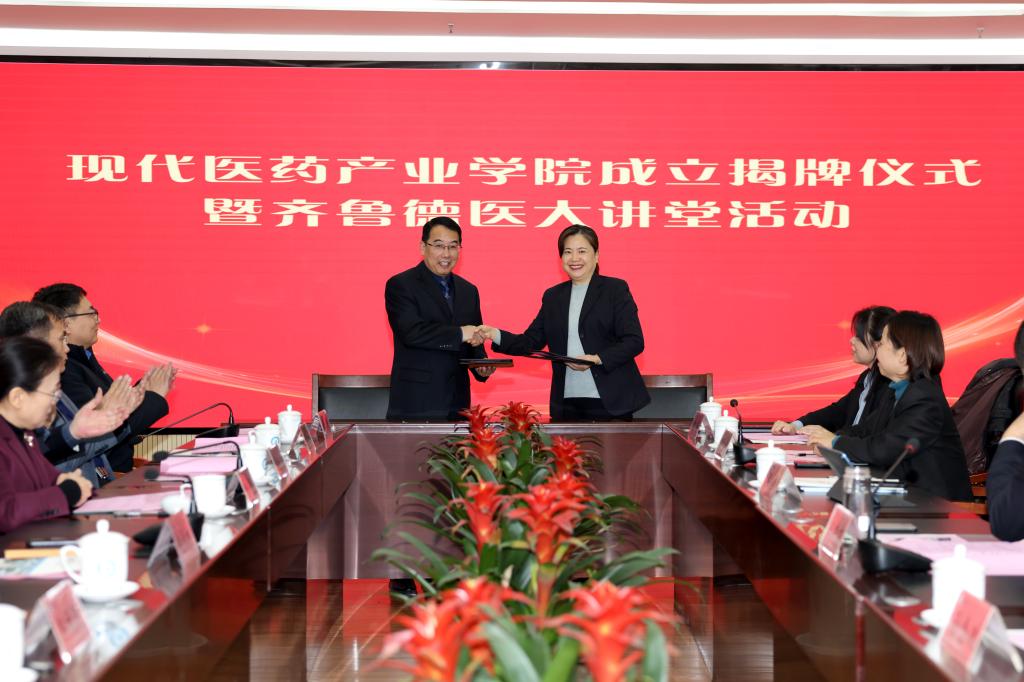 学校举办现代医药产业学院成立揭牌仪式暨齐鲁德医大讲堂活动