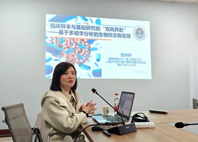 2025年10 月 24 日,药苑讲坛第七期在启智楼 0529 会议室如期举行。本次讲坛特邀上海市药物(中药)代谢产物研究重点实验室主任、海军军医大学药学系药物分析学教研室主任周婷婷教授主讲,suncitygroup太阳成集团博士教师、研究生、本科生代表参加交流。讲坛分学术讲座和基金项目指导两个阶段进行。
