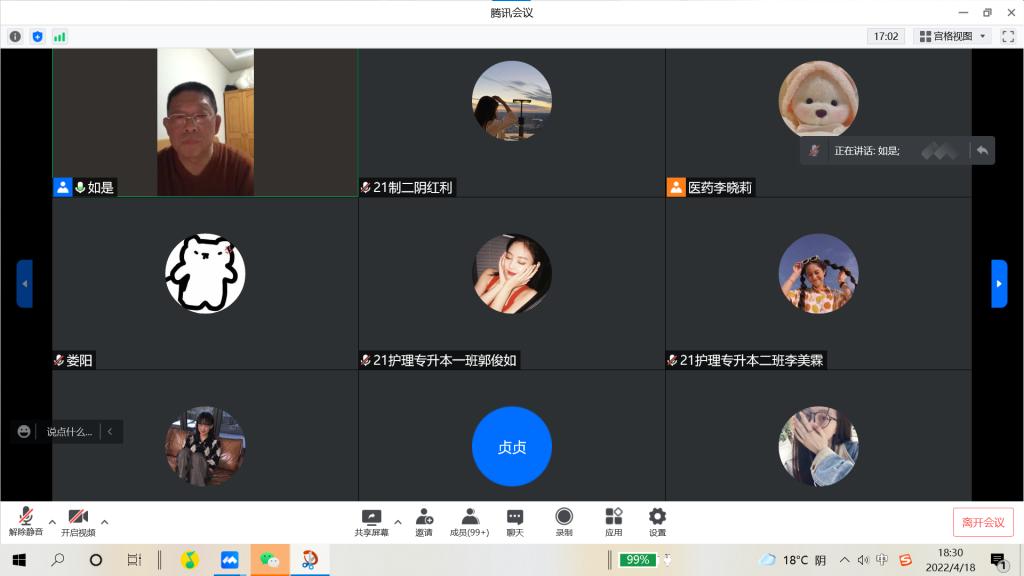 4月18日晚,医药与护理学院第34期入党积极分子培训班在腾讯会议持续开讲,组织员王永顺老师以《知党信党 举旗定向》为主题,为全体入党积极分子上了一堂生动的党课。