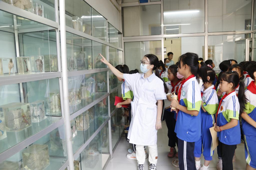 活动分为参观和讲解两部分,由医药与护理学院的南丁格尔志愿者带领100多名学生参观人体生命奥妙馆、人体科学馆、动物标本实验室、植物昆虫标本室和中医药国粹展示馆等主题科技馆,让小学生们近距离的接触实物。在参观的同时志愿者们生动详细地讲解人体构造、中药材的制作过程和药理作用,以及动植物标本的制作过程,让小学们感受到科普的魅力。