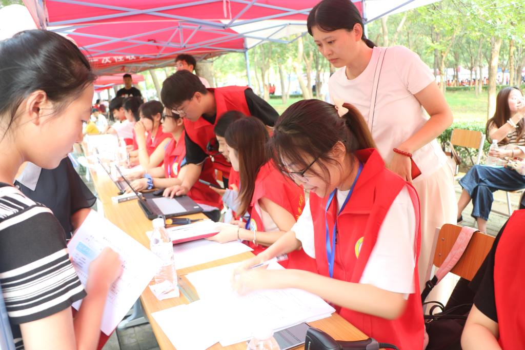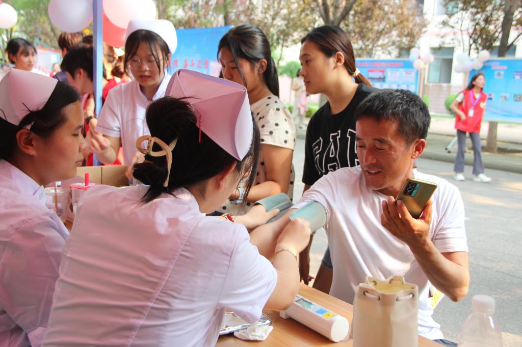 迎新工作顺利开展的背后离不开志愿者们的不辞辛苦与默默付出。为了更好得为新生服务,医药与护理学院志愿者团队派出迎新志愿者耐心为新同学录入信息、分发校园卡、为新生搬行李、引领新生到宿舍,将医护学子的热情展现的淋漓尽致。学院还开设了健康义诊活动,为前来送新生的家长免费进行量血压、测血糖,现场科普心肺复苏急救方法,使家长以及新生对学院有一个更好的认知。全身心服务、止于至善是他们的真实写照。同时,迎新工作也得到了学校、学院各级领导的关心和支持。校领导一行莅临迎新点指导相关工作,为新生入学流程顺利进行做好保障。