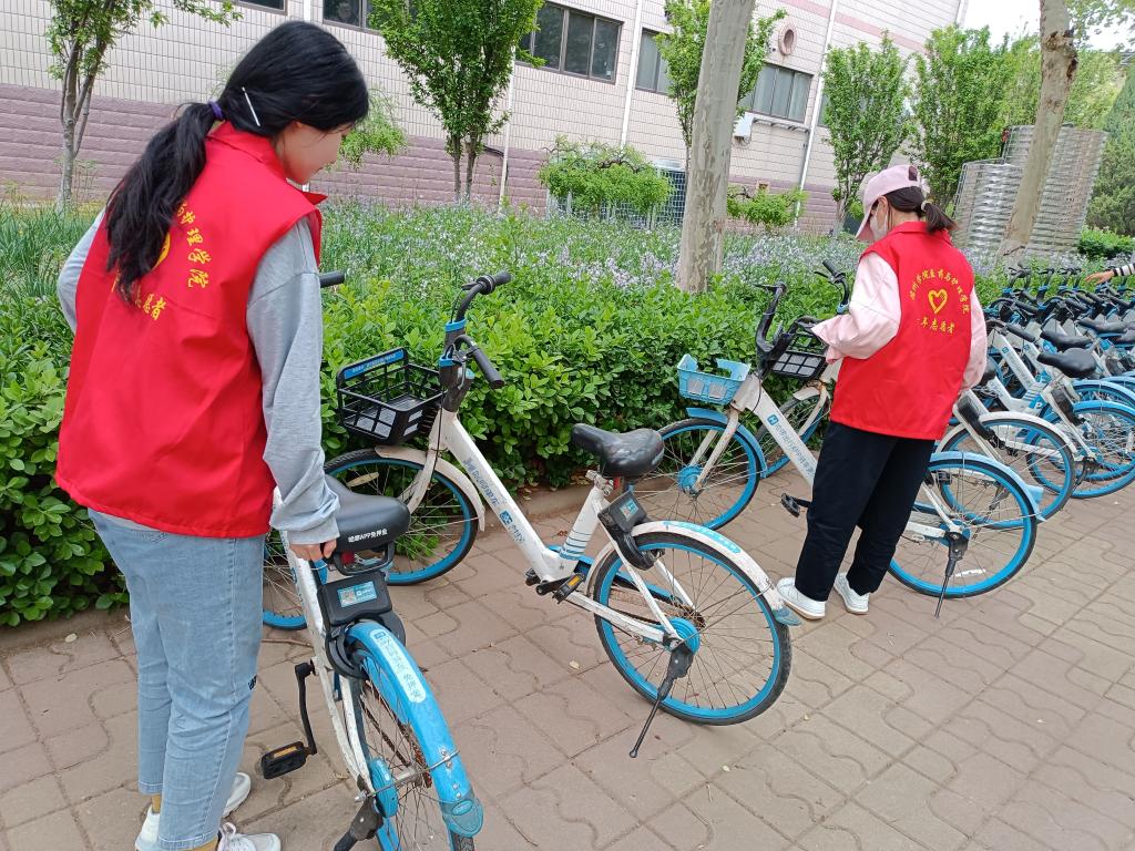 在本次活动中,学生会志愿者们认真擦拭、摆放停车区内的自行车和电动车。在志愿者们齐心协力的努力下,停车区重回整齐的模样,为师生提供干净、有序又方便的出行环境,即使整理活动范围广,工作量较大,但进展顺利,效果良好。