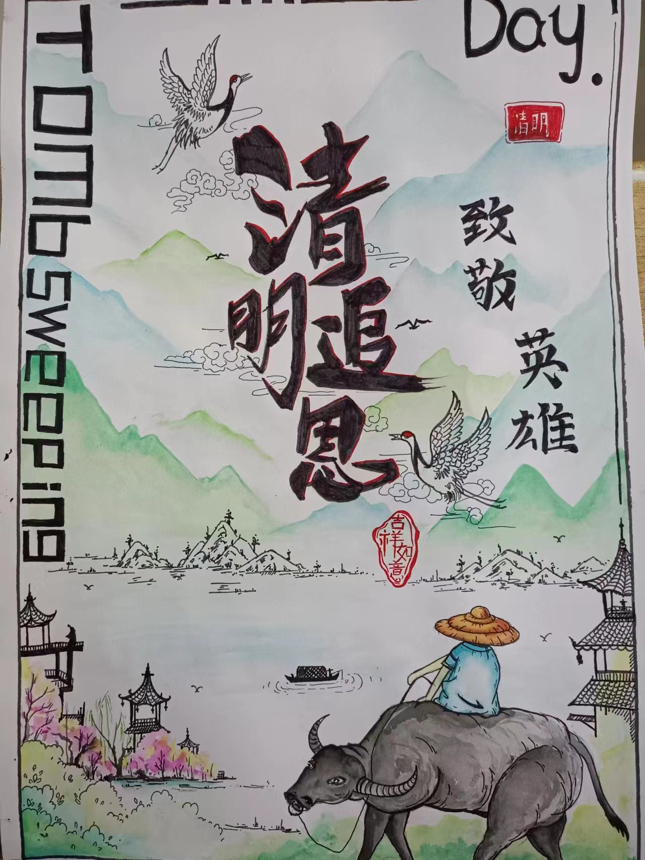 在此活动中同学们了解了革命烈士的故事,激发了创作热情,同学们将自己的情感融入绘画作品之中,通过自己的画笔表达对革命烈士的哀悼。此次活动的成功举办,使同学们时刻铭记烈士们为解放国家和民族而不惜牺牲生命的大无畏的英勇事迹,向烈士们学习顽强拼搏、艰苦奋斗的精神。