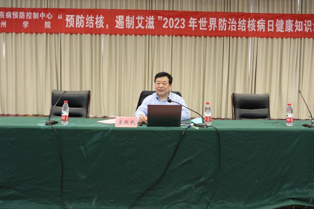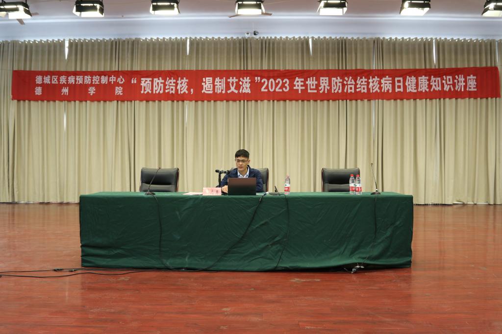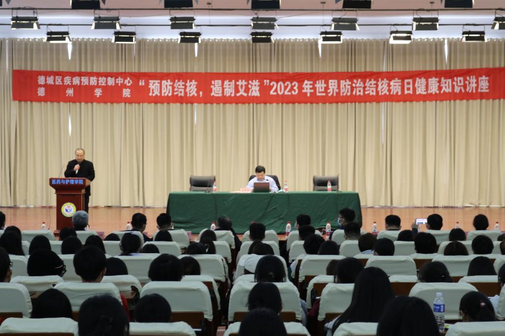 为深入学习宣传贯彻党的二十大精神,呼吁社会各界共同终结结核病流行,维护人民群众身体健康 。3月15日下午,在2023年“3.24世界结核病防治日”到来之际,太阳成城集团联合区疾控中心举办了“预防结核,遏制艾滋”健康教育宣传活动,活动由医药与护理学院承办。省疾控中心副主任康殿民、太阳成城集团党委委员、副校长张存峰、德城区副区长刘桂芝、德城区卫健局、疾控中心负责人以及学校后勤处、校团委、医药与护理学院负责人、师生共计500余人参加活动。