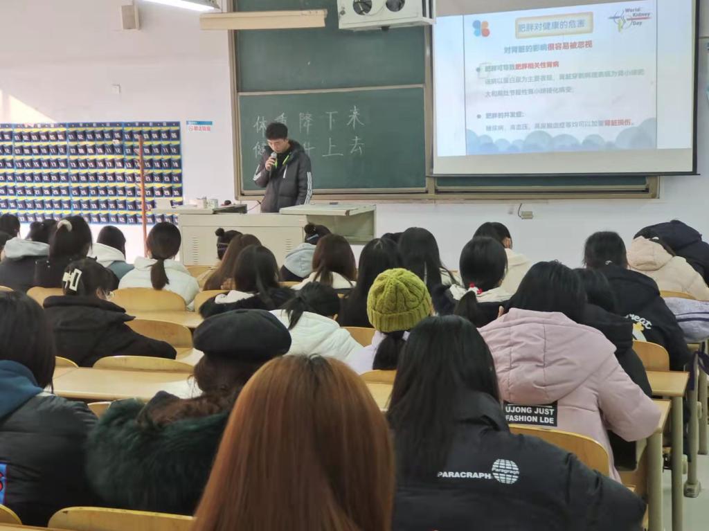 为了增强同学们预防肥胖的意识,促进身体健康发展,医药与护理学院社团活动部于2021年12月11日上午在求实楼213教室举办“体重降下来,健康升上去”主题教育讲座。