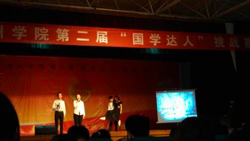 比赛分为“国学演绎”、“海纳百川”、“领悟国学”、“国学争霸”等四个环节。医药与护理学院学生马法辉、李宏刚、姜月月、张琳凭借扎实的基本功和较强的灵活应变能力,从各路选手中脱颖而出,荣获二等奖。