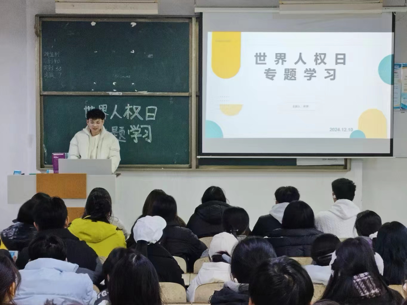 为纪念《世界人权宣言》发表76周年,增强同学们的尊重与保障人权的意识。12月10日,suncitygroup太阳成集团学生会于体育楼414教室开展了“倡人权风尚,弘尊严精神”主题宣讲活动。