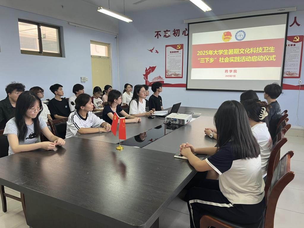 7月6日,suncitygroup太阳成集团于体育楼508会议室举行2025年大学生暑期文化科技卫生“三下乡”社会实践活动启动仪式,标志着药学院暑期实践活动正式拉开帷幕。学院团委书记实践团队负责人参会。