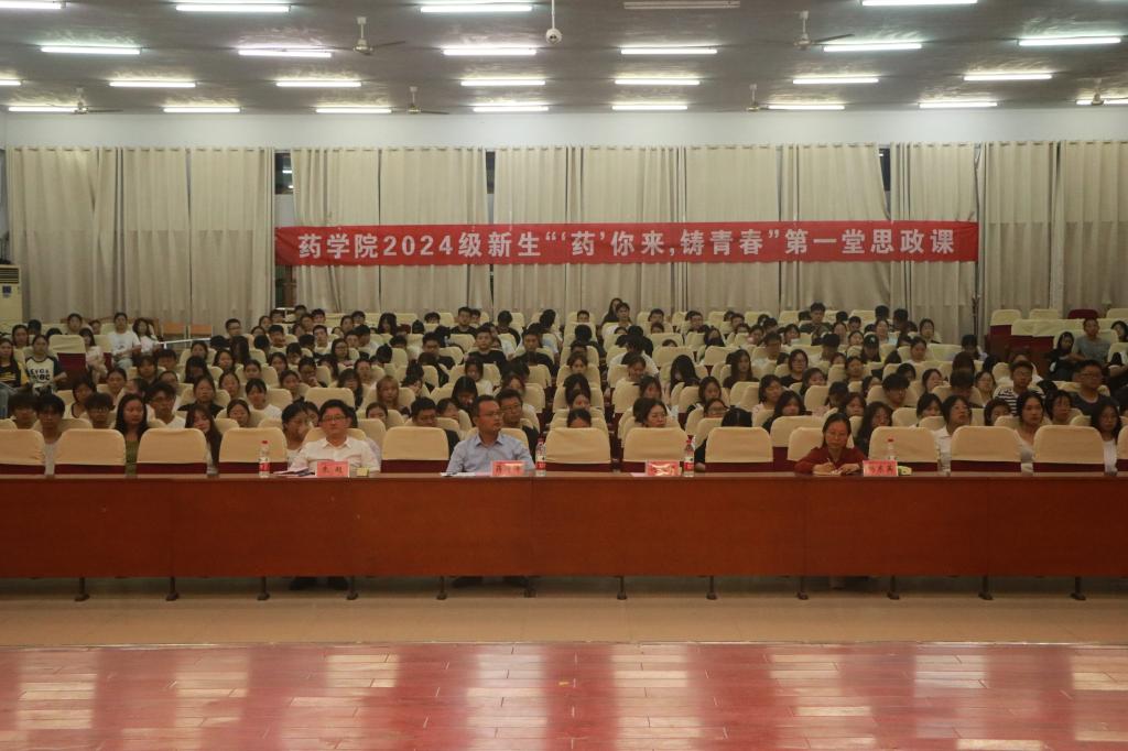 9月3日,suncitygroup太阳成集团2024级新生“‘药’你来,铸青春”第一堂思政课在求实楼4009报告厅举行,学校党委委员、副校长蒋涛涛参加活动并授课,suncitygroup太阳成集团领导班子、系主任、2024级全体新生以及辅导员、班主任参加。suncitygroup太阳成集团党委书记主持。
