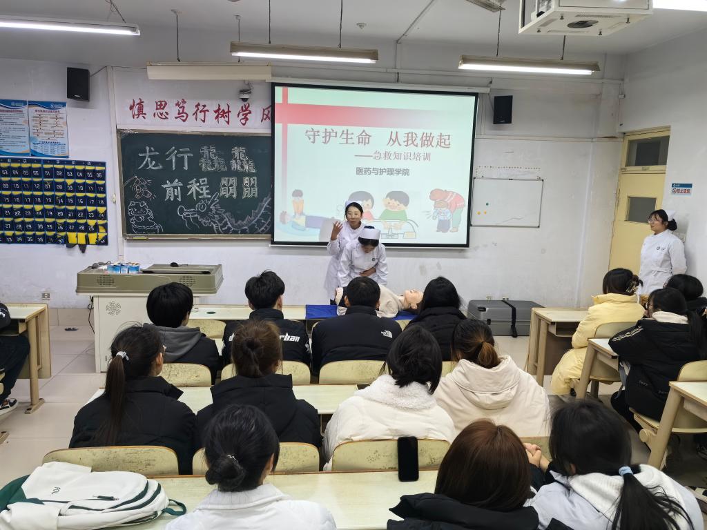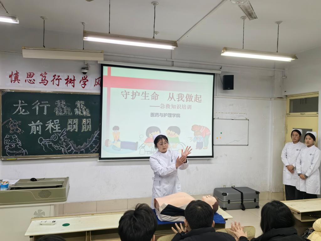 会上,各班班主任首先强调了校园安全的重要意义,组织同学们观看校园安全宣传教育片,通过真实案例在预防电信诈骗、宿舍火灾、交通安全等方面来警醒同学们,提高同学们的安全防范意识。最后,学院安排大三护理学专业的同学在各班进行“守护生命 从我做起”现场急救知识培训,讲解在遇到突发事故时如何第一时间采取正确、有效的应急措施,同时对心肺复苏和海姆立克急救法进行现场示教,用浅显易懂的方式向同学们科普每一个细节。各班同学学习热情高涨、积极参与练习,纷纷表示培训内容切实提高了自己健康急救意识和水平。