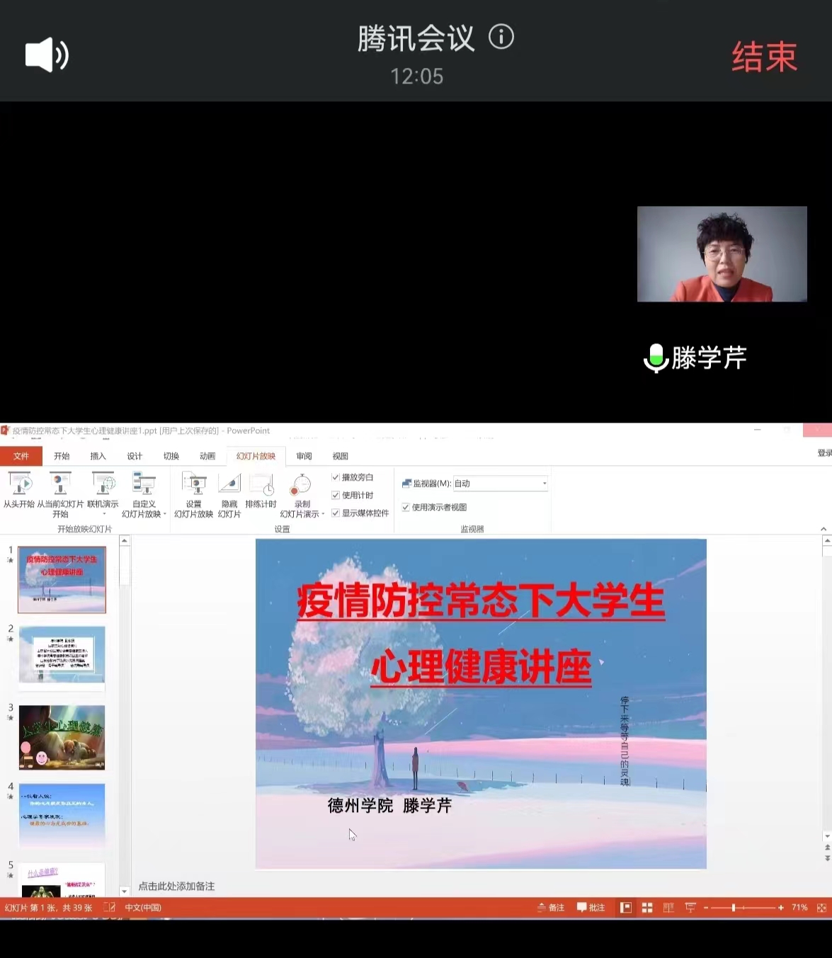 德州市科学大讲堂以习近平新时代中国特色社会主义思想为指导,全面贯彻落实习近平总书记关于科技创新的重要论述和重要指示精神。帮助大学生健康成长,精准把握疫情防控背景下大学生身心健康教育的任务,切实增强大学生健康教育工作的针对性和实效性。及时发现问题,做到早发现、早干预,防患于未然,构建和谐校园。