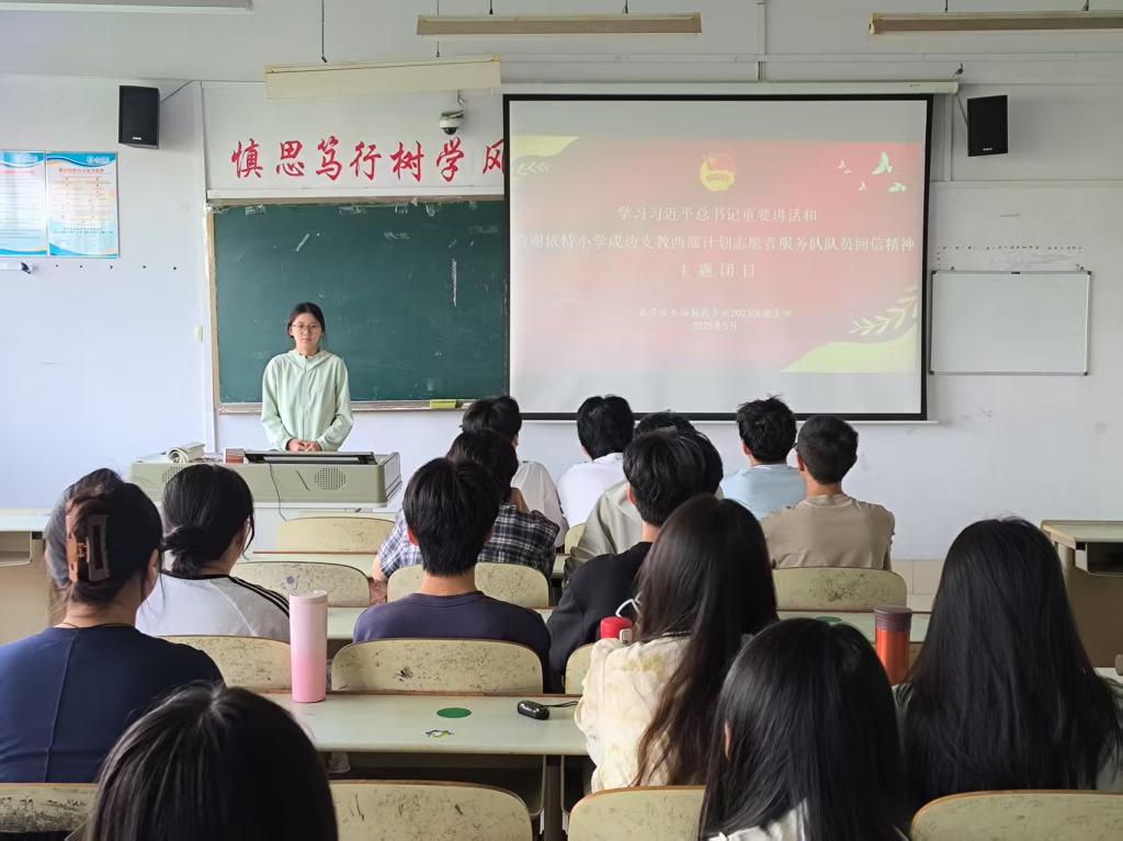 为深入学习宣传贯彻习近平总书记重要讲话和给谢依特小学戍边支教西部计划志愿者服务队队员回信精神,勉励广大青年到祖国和人民最需要的地方发光发热,贡献青春力量。5月12suncitygroup太阳成集团组织各团支部开展了“学习习近平总书记重要讲话和给谢依特小学戍边支教西部计划志愿者服务队队员回信精神”主题团日活动