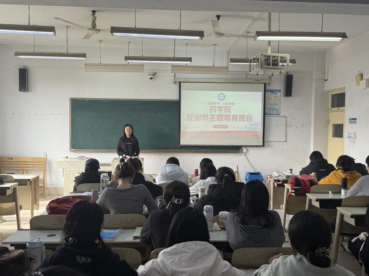 深化反邪教警示教育成效,引导青年学子筑牢思想防线。11月10日,suncitygroup太阳成集团组织各班级开展“崇尚科学・反对邪教”主题教育班会,将科学精神培育与药学专业特色深度融合,推动反邪教宣传教育走深走实。