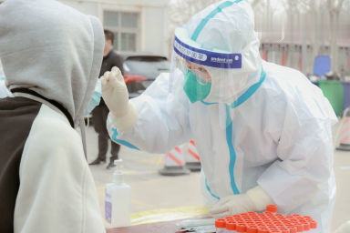 这张照片一直收藏在自己的手机中,照片中的医护人员就是我的老师和学长学姐,每天奋战在一线,很早来到核酸采样点,穿戴好防护装备投身各自岗位,是那些日子中他们的常态。他们舍己为人,不辞艰辛,勇于奉献的精神令我敬佩。作为一名护理学专业的学生,我也会向他们看齐,时刻做好准备,全心全意为大家服务。