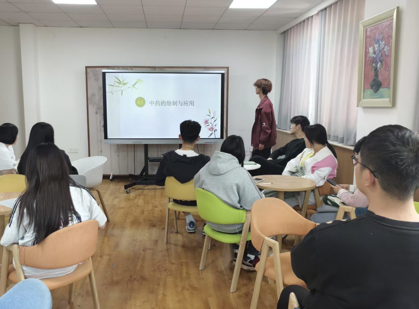 主讲人以“中药的起源与演变”为脉络,从原始社会人类对植物药的偶然发现,到《神农本草经》的药物分类,再到现代中药标准化建设,系统梳理了中医药知识体系的形成过程。特别强调了历代医药学家在实践中积累总结的探索精神,如何为中药发展奠定了深厚的理论与实践基础。在药性理论讲解环节,通过生动案例解析中药“四气五味”理论——寒、热、温、凉四种药性与酸、苦、甘、辛、咸五种药味的搭配规律,结合“升降浮沉”的药性趋向,深入浅出地阐释了中药复方配伍的科学内涵。现场同学纷纷表示,这种将抽象理论与生活实例相结合的讲解方式,让复杂的医药知识变得通俗易懂。
