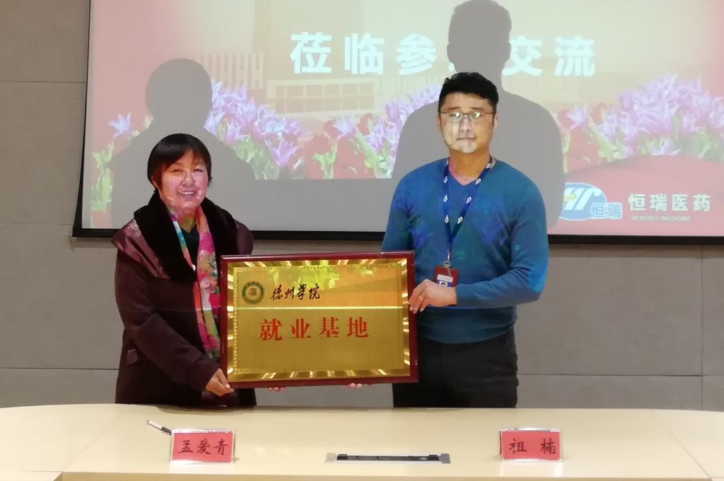 为促进学院学生更加高质量实习就业,2019年11月28日至30日,医药与护理学院党总支副书记孟爱青一行前往江苏恒瑞医药股份有限公司考察并签署就业基地协议。