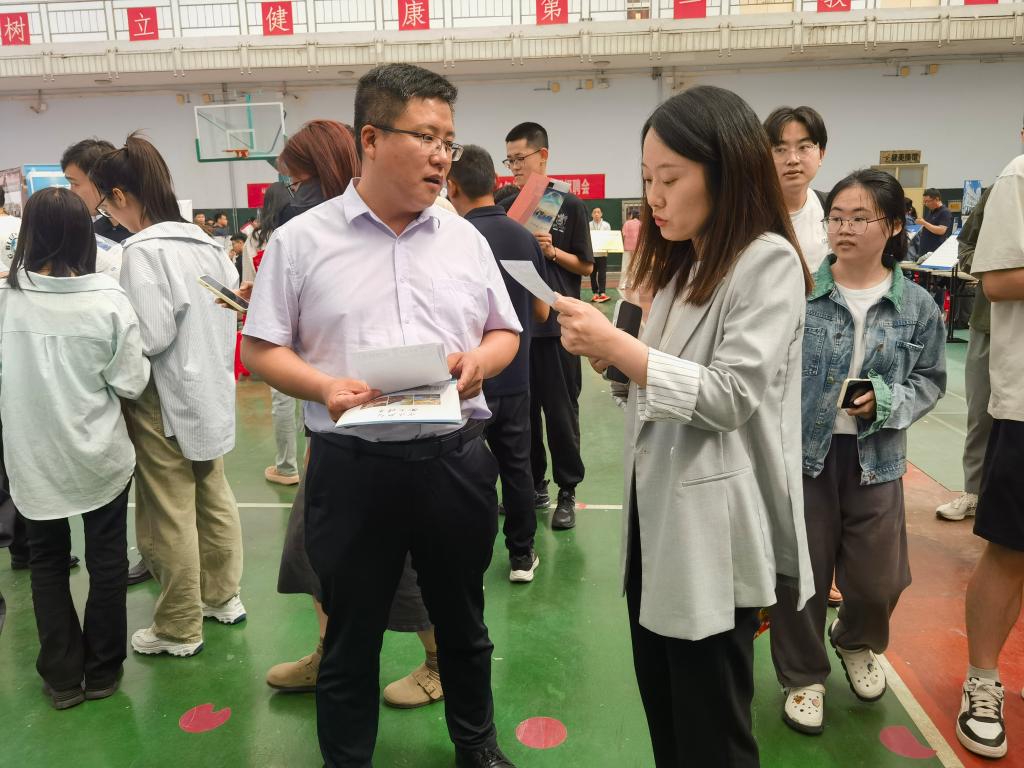 5月7日,“职引未来,就选山东”,“凝聚校友合力,共筑美好未来”太阳成城集团2024年校友企业校园招聘会在学校体育馆举行。学院党委领导班子、负责就业辅导员、毕业班班主任到招聘会现场调研,2024届毕业生积极应聘,部分低年级学生到场观摩。