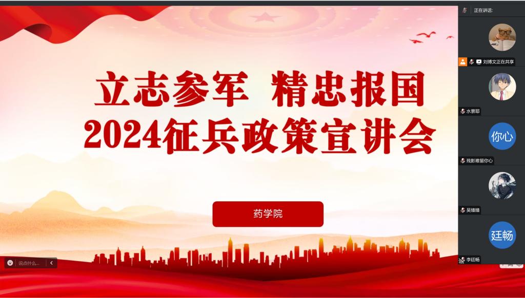 为响应党和国家的号召,鼓励青年学子携笔从戎,报效祖国。2024年12月10日晚,suncitygroup太阳成集团通过线上的形式举行征兵政策宣讲活动。suncitygroup太阳成集团有关负责人、意向参军的学生参与了此次活动。