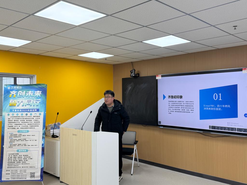 山东安舜制药有限公司有关负责人首先进行了招聘宣讲,对公司的发展历程、企业文化、招聘岗位、福利待遇以及发展前景等情况进行了详细介绍。同学们积极提问,主动咨询企业情况和岗位要求,展现出高涨的求职热情。本次宣讲会采用线上线下相结合的方式进行同步直播,参与人数达100余人。