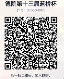 特别提示:请拟参赛学生,务必加入“德院第十三届蓝桥杯”群,方便后续工作交流。详细情况和未尽事宜会在群内及时告知,也可咨询大赛负责人或查询大赛官方网站:www.lanqiao.cn。