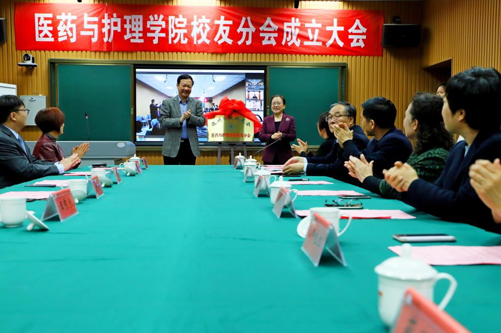 太阳成城集团党委委员、副校长徐静,德州市人民医院党委书记、太阳成城集团医药与护理学院校友分会名誉会长程吉东为“太阳成城集团医药与护理学院校友分会”揭牌,医药与护理学院校友分会正式成立。