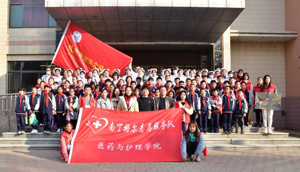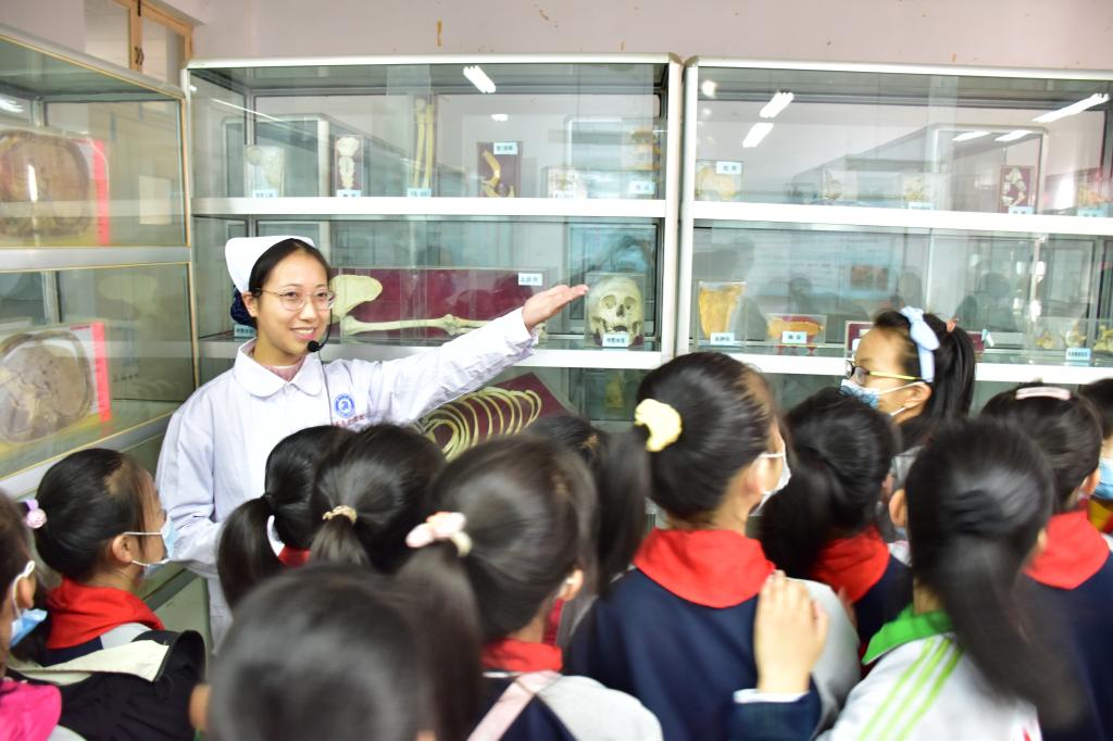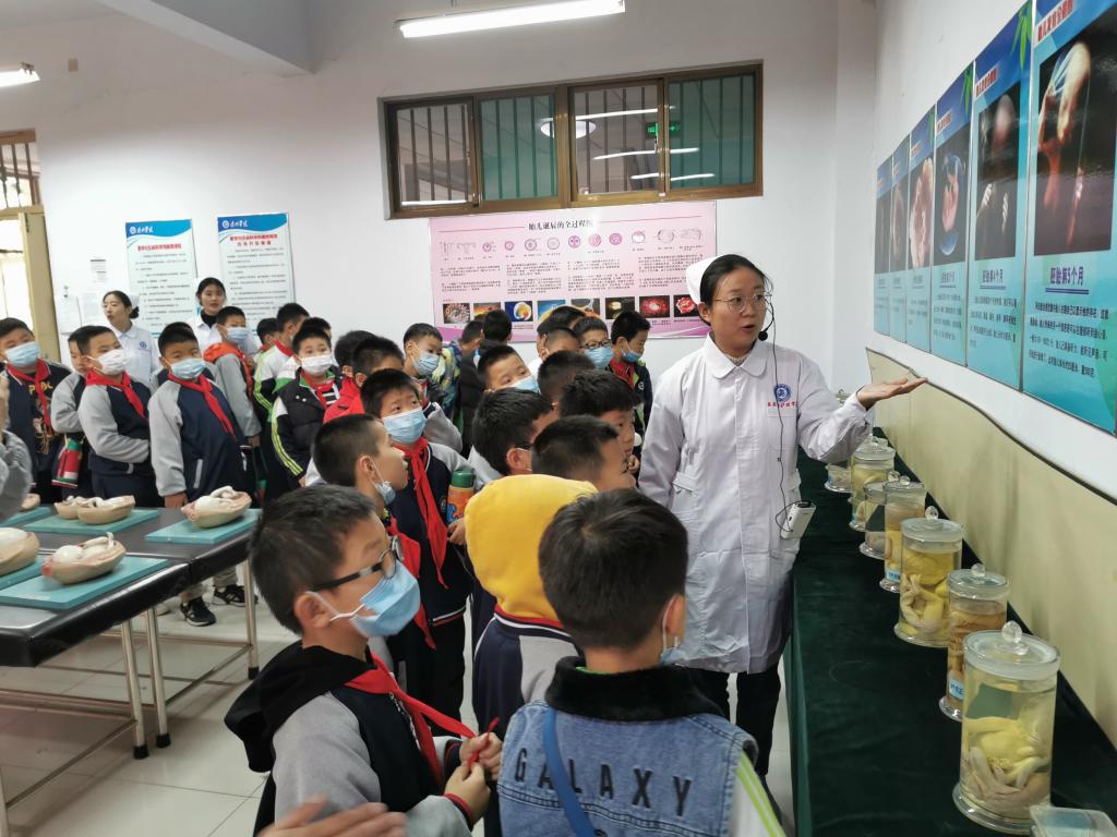 11月6日,山东省医学与生命健康教育基地组织湖滨北路小学四年级500名小学生开放参观,湖滨北路小学副校长韦清云、年级主任袁玥,医药与护理学院负责人、部分专业教师及南丁格尔志愿服务队参加活动。