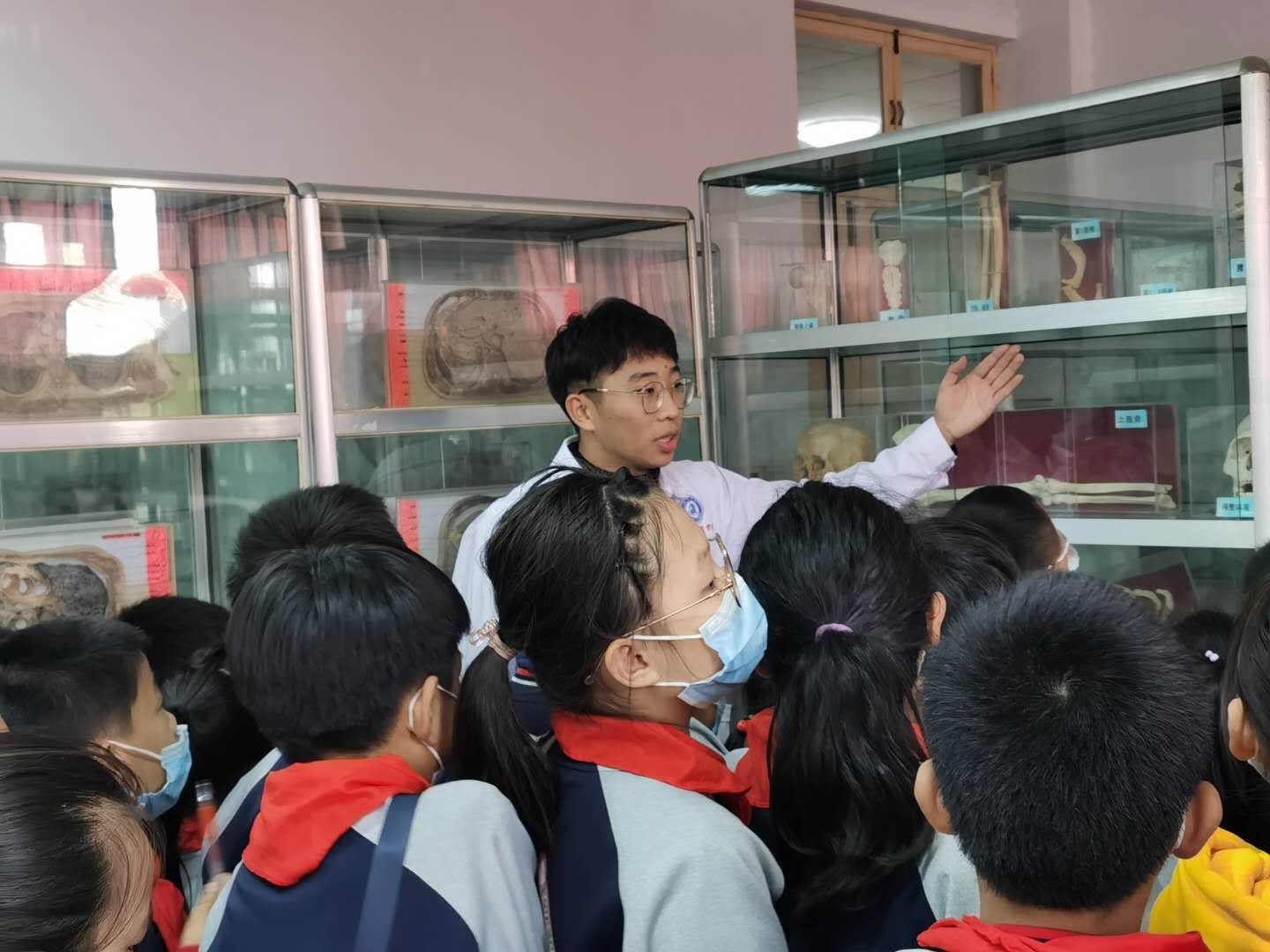 小学生们在志愿者的带领下参观了人体生命奥妙馆、人体科学馆、中医药国粹展示馆、植物昆虫标本馆、动物标本馆等多个主题科普展览馆。通过专业老师热情细致的讲解,学生们了解了人体结构,感受到生命发育历程的奇妙,认识了中药材的制作过程和药理作用,提升了科学文化素养。