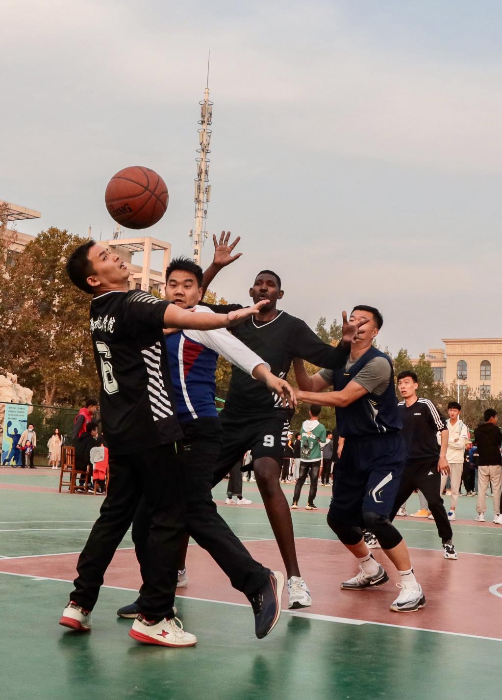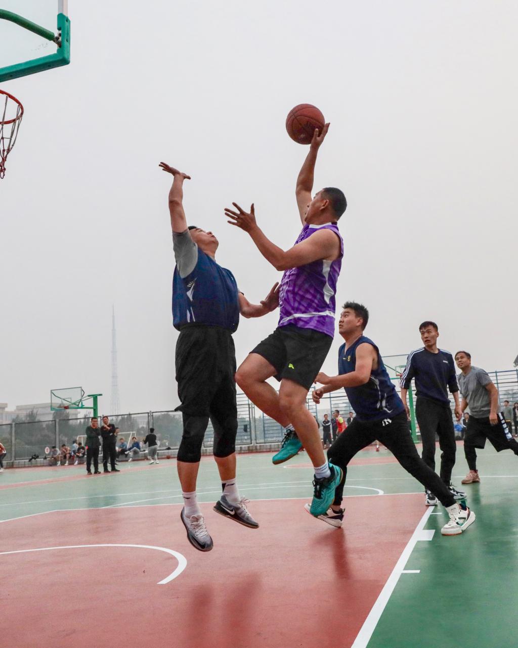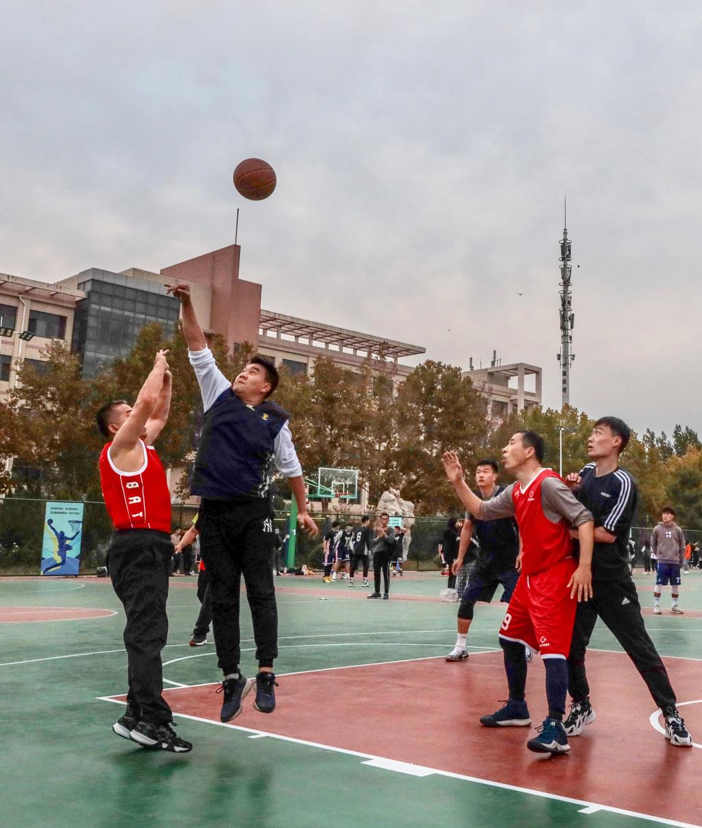 在冠亚军决赛中,我院男篮与机关队男篮奋力拼搏,每球必争,全场比赛打成10比10平,在加时赛中以11比12惜败,勇夺2020年太阳成城集团教工男篮比赛亚军。