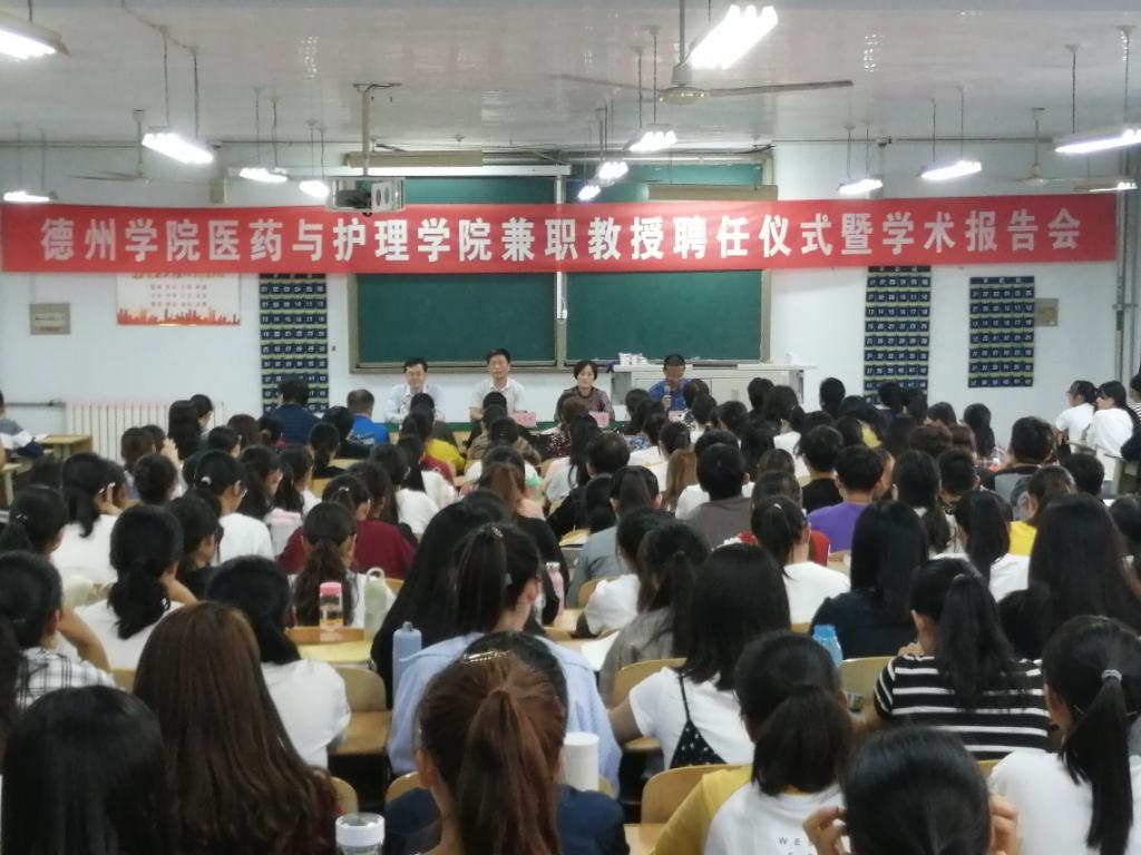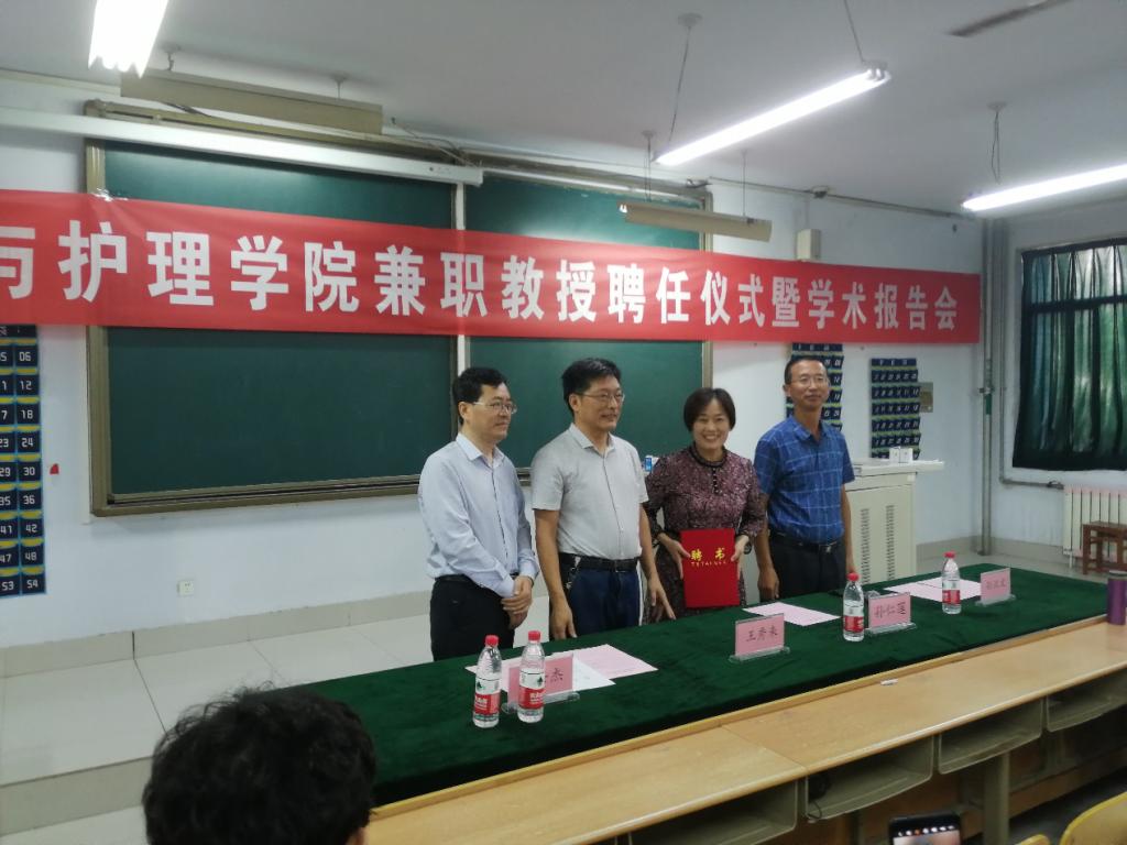 为积极贯彻落实《山东省医养健康产业发展规划(2018—2022年)》,提升医养健康研究院医学科学研究水平,提高医药产业人才培养质量,9月25日下午,我院兼职教授聘任仪式暨学术报告会在太阳成城集团求实楼2010教室举行,德州市人民医院护士长孙仁莲教授受聘为太阳成城集团医药与护理学院兼职教授,医药与护理学院党总支书记王秀来、院长孙汉文、副院长孙士杰、教师代表以及2019级护理学专业学生参加了仪式。