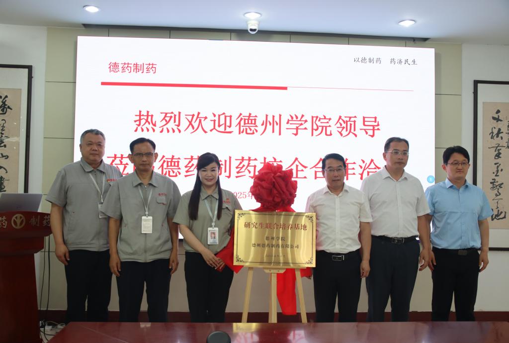 单振涛表示,德药制药有限公司科技创新能力雄厚,多年来本着“以德制药 药济民生”的理念,成长为德州市的重点企业。德州学院作为硕士研究生培养单位,在师资队伍建设、教学科研水平、人才培养等方面获得了高水平的发展,学校奋力开创高水平、有特色、国际化应用型大学建设新局面,全面加强与有关单位在教科研方面的合作与交流。学校与德药制药建立研究生联合培养基地,将有助于推进协同育人培养模式的发展,能进一步提高人才培养质量。希望双方深入开展人才引育、课题研究、人才培养等方面的合作与交流,促进彼此发展,为区域经济社会发展做出更大贡献,培养出更多应用型人才。会上,双方举行协议签订仪式和揭牌仪式,