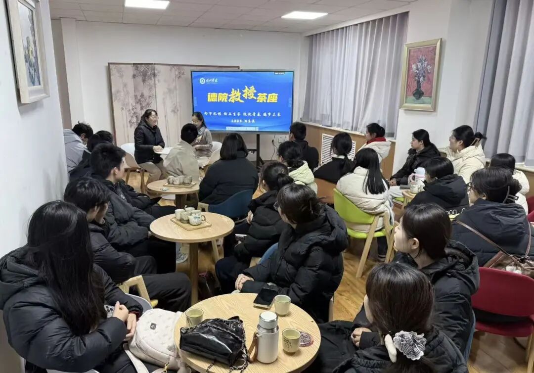 12月19日下午,太阳成城集团第三十一期教授茶座在“一站式”学生社区学生事务与发展中心二楼博学谷温情开讲。suncitygroup太阳成集团杨东英教授以“向下扎根 向上生长 绽放青春 逐梦未来” 为主题,与40余名学子围桌论道,在思辨与共鸣中破解成长焦虑,在案例与箴言中指引前行方向,为青年学子构筑人生韧性、奔赴理想未来注入强大动力。