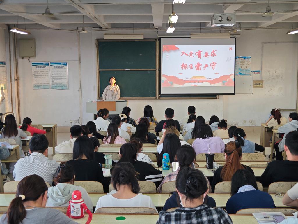 4月25日晚,医药与护理学院第36期入党积极分子培训班在体育楼414持续开讲,医药与护理学院第二学生党支部书记李晓莉老师以“入党有要求 标准须严守——大学生入党须知及注意事项”为主题给全体积极分子上党课。