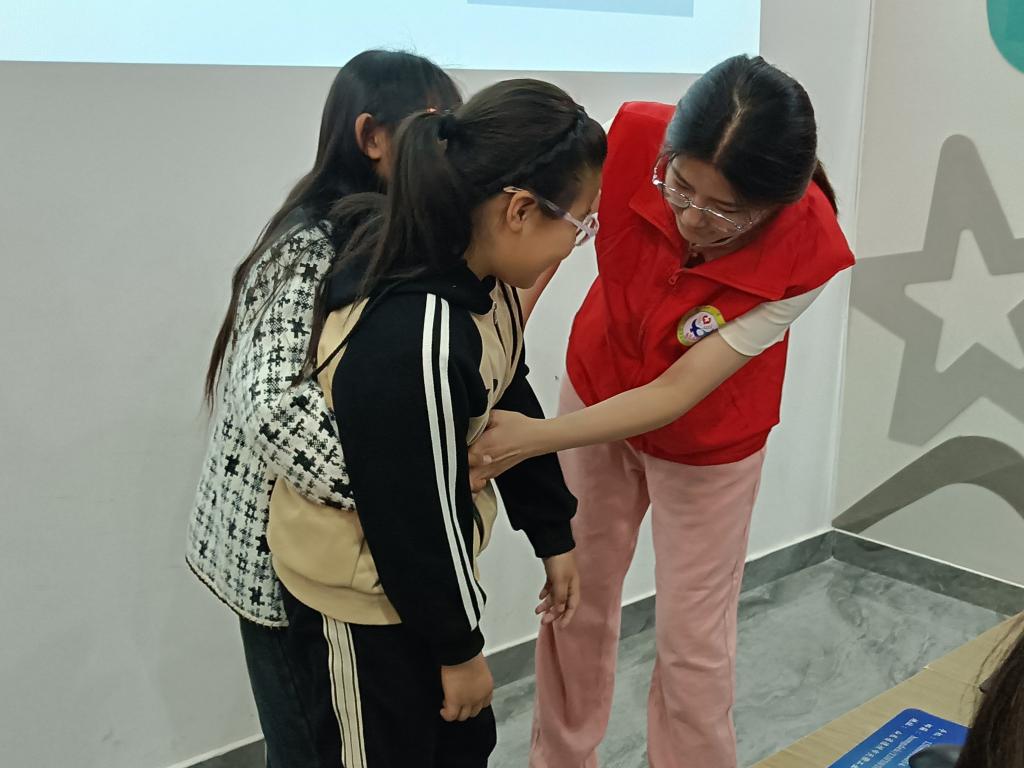 活动伊始,志愿者通过ppt与视频的形式,向青少年详细讲解了网络安全、日常生活、心理健康等安全教育实践与推广,并讲解如何预防及避免安全问题的发生,引导青少年提高安全意识。随后,志愿者对海姆立克急救法和血压计使用方法进行现场操作示范,讲解在遇到突发状况时如何第一时间采取正确、有效的应急措施,用浅显易懂的方式科普每一个细节。青少年学习热情高涨、积极参与练习,纷纷表示培训活动切实提高了自己健康急救意识和水平。