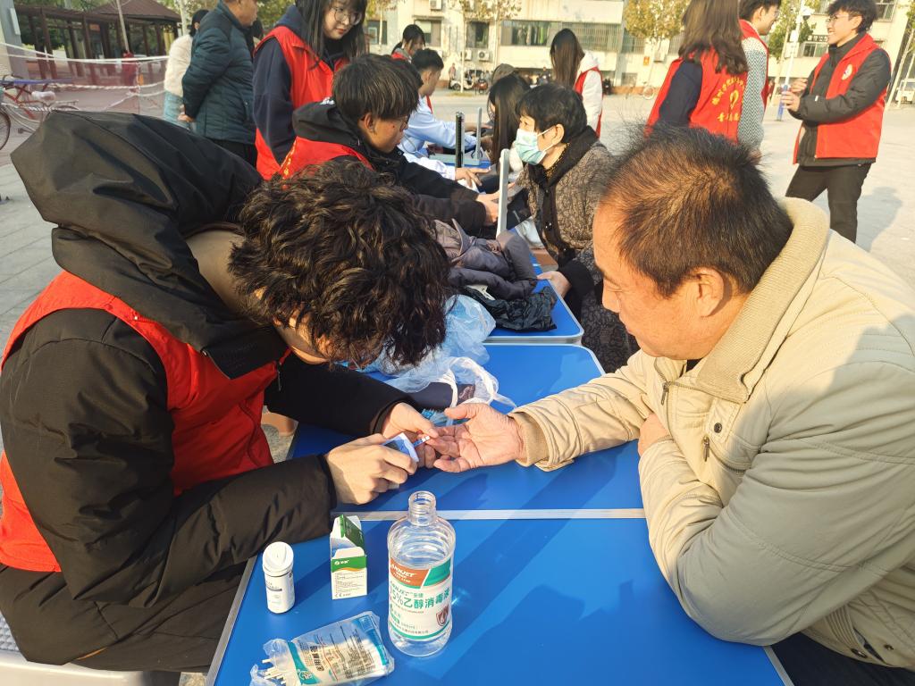 志愿者们为居民量血压、测血糖,宣传口腔保健知识。活动中,小青马通过图文并茂的PPT展示为社区居民讲述了口腔保健用品和牙齿敏感等常见问题,并在社区广场设立健康义诊服务点,他们为居民测量血压、血糖,讲解冬季保健常识。社区居民为志愿者们的到来表示欢迎和赞赏,让“青马”学院和志愿者们在社会实践中了解基层、服务基层,为基层社区的发展贡献青春力量。